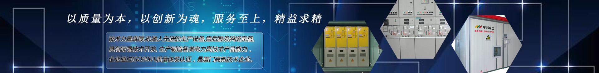 廈門宇邦電力設備有限公司是專業生產高、低壓開關及成套設備,預裝式變電站、配電自動化控制設備等多種電器產品的企業,原機電部、能源部聯合定點生產企業,,國家經貿部城鄉電網改造推薦目錄企業及建設部推薦企業,廈門宇邦電力設備有限公司座落在美麗海濱城市-廈門。自有廠房面積18600平方米,現有員工160人,其中工程技術人員占總人數60%,技術力量雄厚,機器人先進的生產設備,售后服務網絡完善,具有較強技術開發, 生產制造各類電力高技術產品能力,企業通過ISO9001質量體系認證,是廈門高新技術企業。